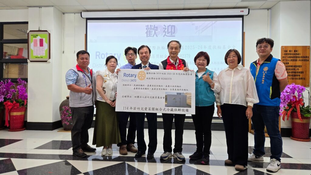 國際扶輪3470地區民雄社由社長林宗正、嘉義南區社社長吳俊炫、嘉義大林社社長陸金榮、嘉義東南社社長 蔡仕東、嘉義皇家社社長吳雅雯、國際扶輪3510地區台東東海岸社社長陳志成暨全體社友,共同捐贈組合式冷藏保鮮設備給若竹兒愛菜園,30日舉行啟用典禮。