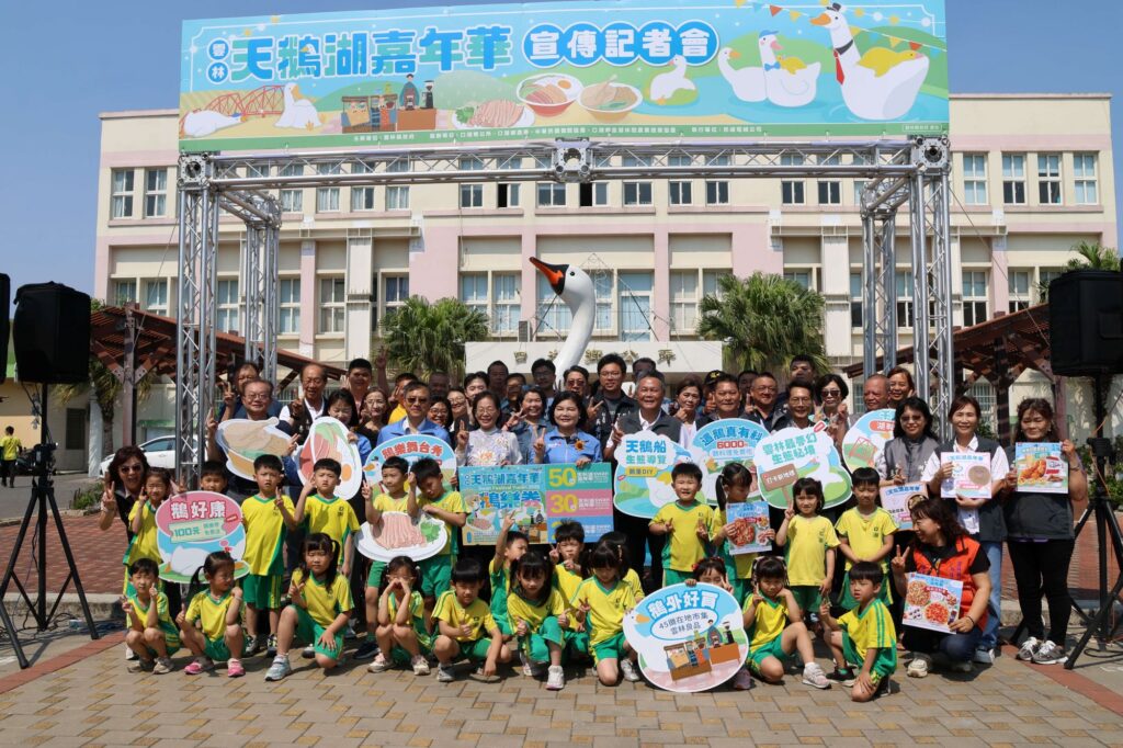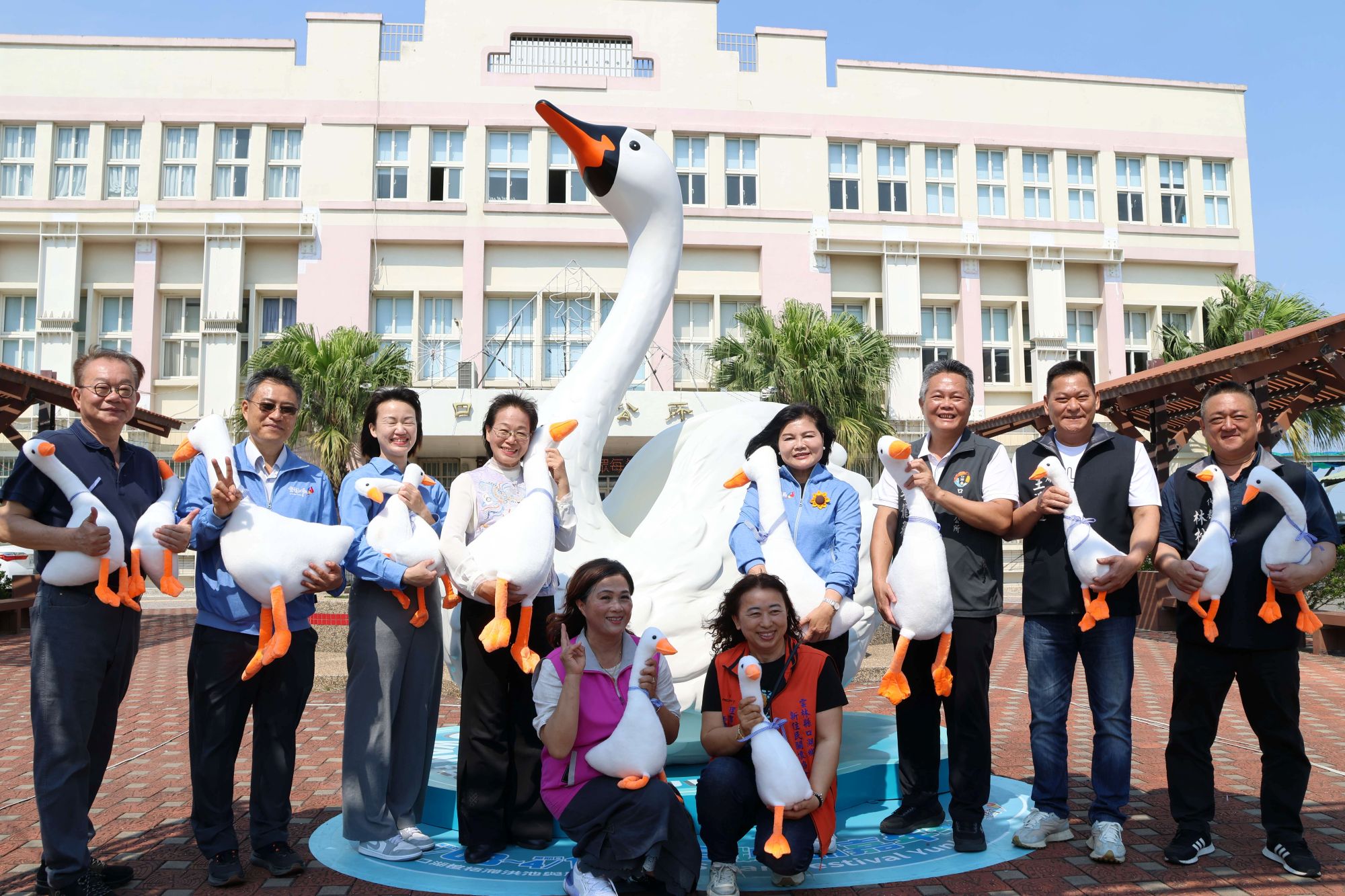 張縣長指出,活動期間除了8米高巨型天鵝裝置藝術外,還有精彩的舞台表演、親子互動體驗、市集美食及生態導覽等豐富內容。更串聯在地農畜產資源,假日不僅有每日限量1,500份的100元『鵝樂券』免費發放,還有每日1,000份鵝肉料理(鵝肉粽、鵝米糕等)試吃,希望讓更多民眾實際品嘗到雲林優質的鵝肉產品。
