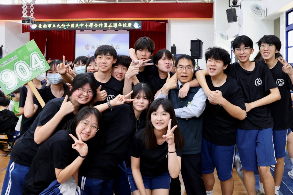 台南市立九份子國民中小學2日舉辦創校五周年校慶,並以「五載拾光、樂學飛翔」為主題,規劃一系列分齡體育競賽與戶外探索教育體驗。市長黃偉哲親臨現場獻上祝福,肯定學校已成為「全社區的希望」,市府將全力推動二期校舍興建,為師生打造更優質的教育環境。