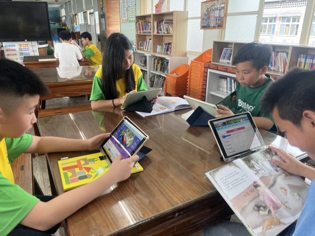 學生進行閱讀平台闖關-官田國小