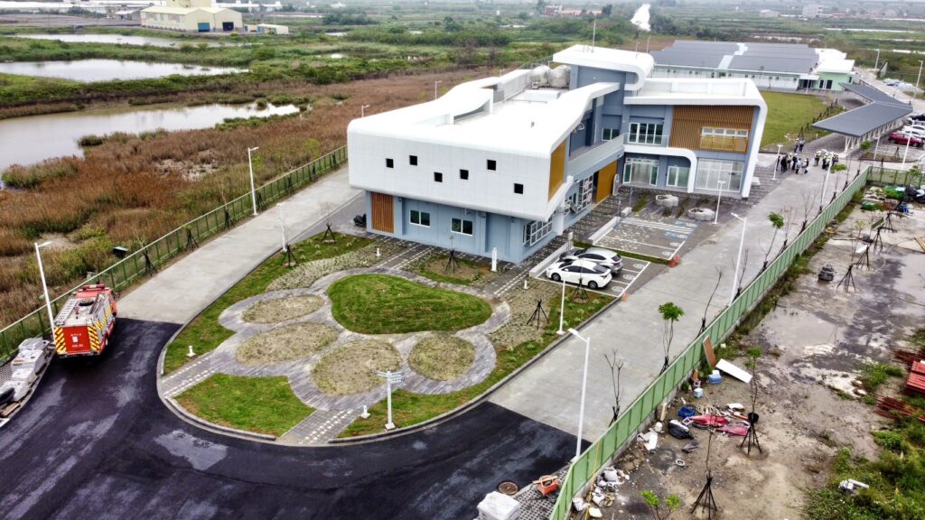 為翻轉社會大眾對動物收容場所刻板印象,園區特別規劃具教育意涵的寵物造型花園;核心建築「教育館」則採柔和曲線設計,象徵守護生命的溫暖與關懷。同時整體動線規劃區分為犬貓入園、日常維運及民眾認養三大系統,有效降低動物彼此干擾與噪音,提升其心理穩定度及認養成功率。另園區採公園化設計,結合景觀步道、寵物活動空間、綠美化植栽及生態滯洪池,提供市民優質休憩環境。