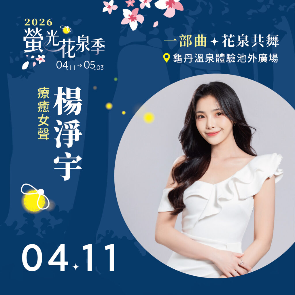 臺南春季觀光盛事「2026螢光花泉季」將於4月11日正式揭開序幕!首波登場的「一部曲:花泉共舞」,將於4月11日至4月12日,每日上午10時至下午4時,在楠西區龜丹溫泉體驗池戶外廣場熱鬧展開。活動結合溫泉體驗、音樂演出、特色市集,以及超療癒的「卡比胖拉」氣偶與紙雕裝置,打造春日最悠閒愜意的山城慶典。