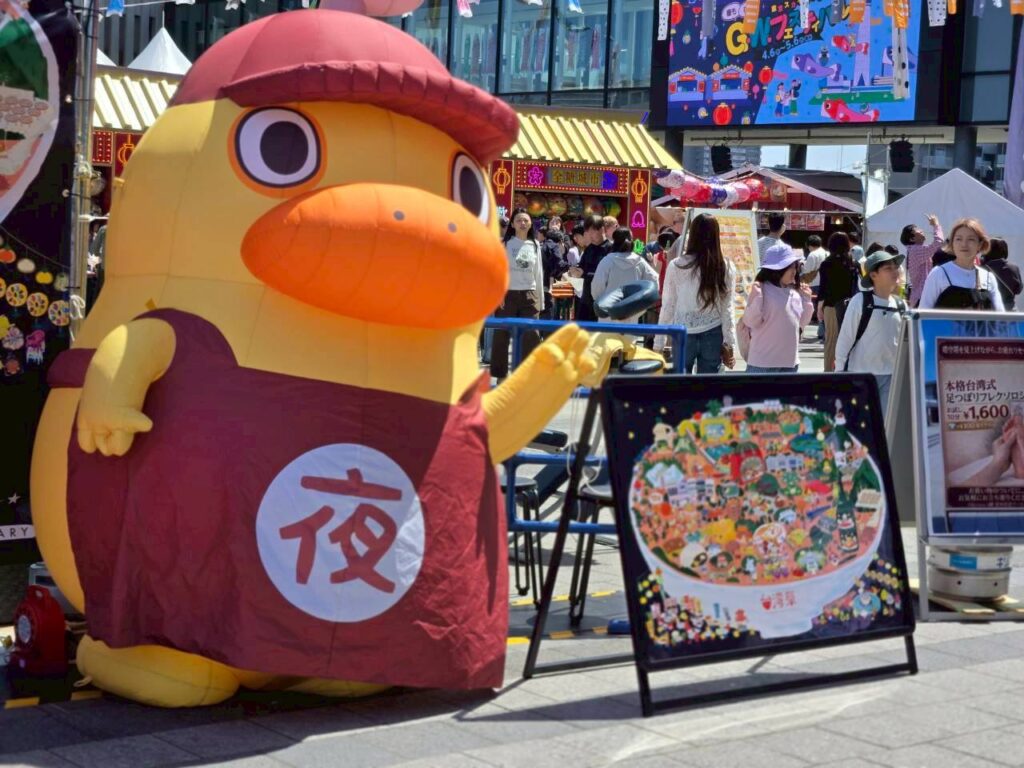 夜奇鴨驚喜現身在晴空塔的台灣祭會場同樂。
