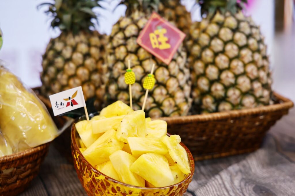 記者會現場展示鮮甜美味的關廟金鑽鳳梨。