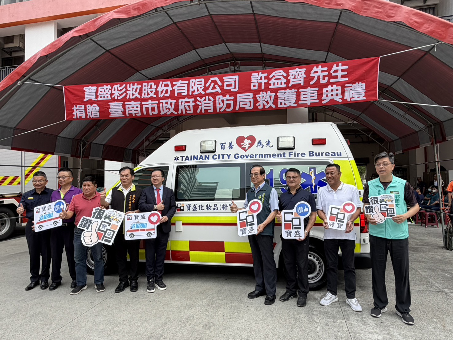 臺南市政府消防局於115年4月15日舉行救護車捐贈典禮。將寶實業股份有限公司董事長許益齊繼113年10月18日首次捐贈救護車後,15日再次展現熱心公益、積極回饋社會的精神,捐贈第2輛救護車。捐贈典禮由消防局局長楊宗林代表受贈,並特別邀請副市長姜淋煌蒞臨擔任見證來賓,場面溫馨隆重。