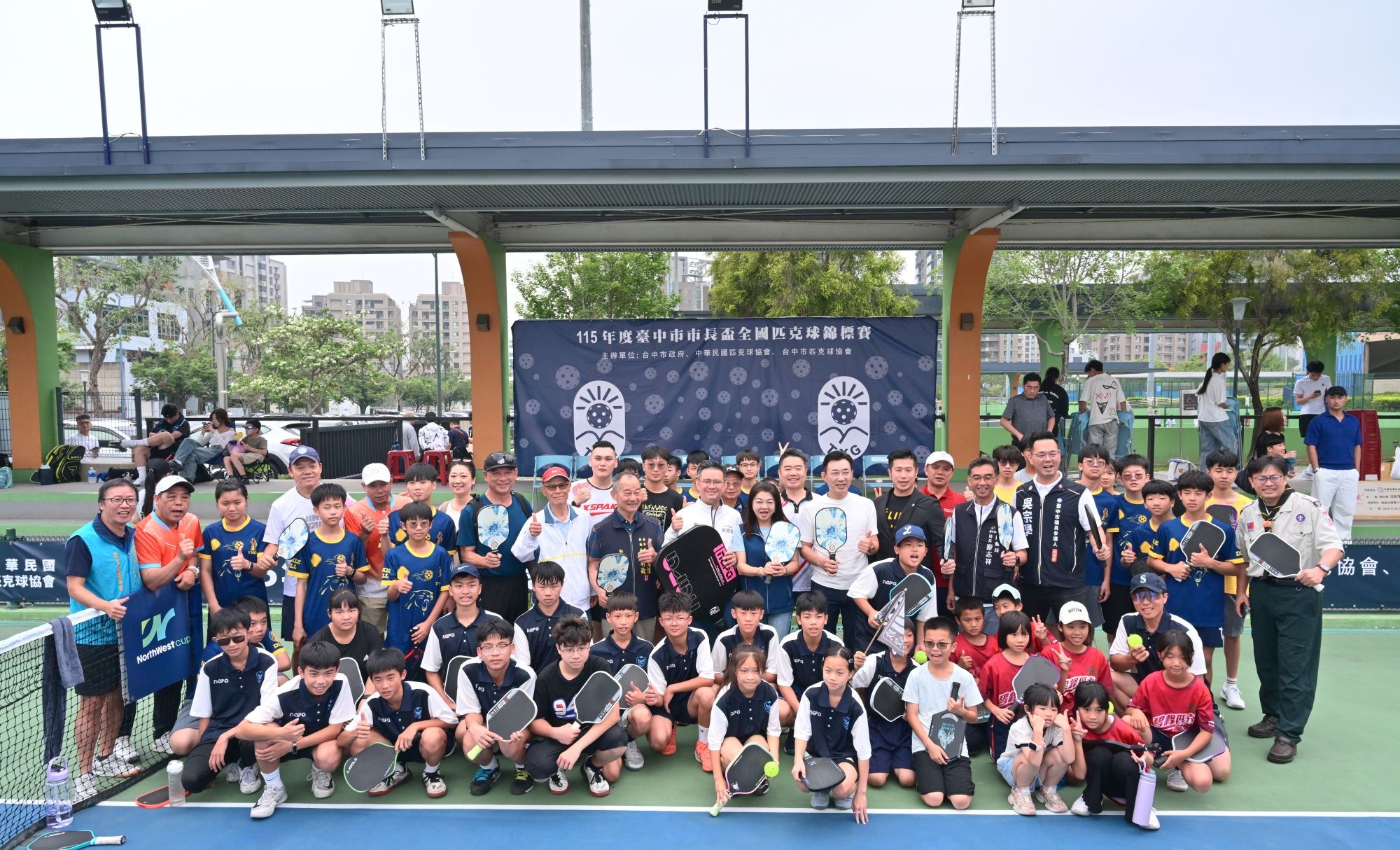 中華民國匹克球協會理事長楊哲明致詞表示,感謝台中市政府運動局攜手台中市匹克球協會及中華民國匹克球協會共同主辦的「115年度台中市市長盃全國匹克球錦標賽」,更感謝最強應援團親臨現場指導:立法院江啟臣副院長、立法委員黃健豪、台中市運動局游志祥局長、中華匹克球協會陳朝鍵榮譽理事長、亞洲匹克球聯合會賴建豪理事長、吳宗學議員參選人、大甲區匹克球委員會陳志成主委、台中市議員暨北區體育會理事長陳文政、台中市國道四號網球協會理事長陳文彬。