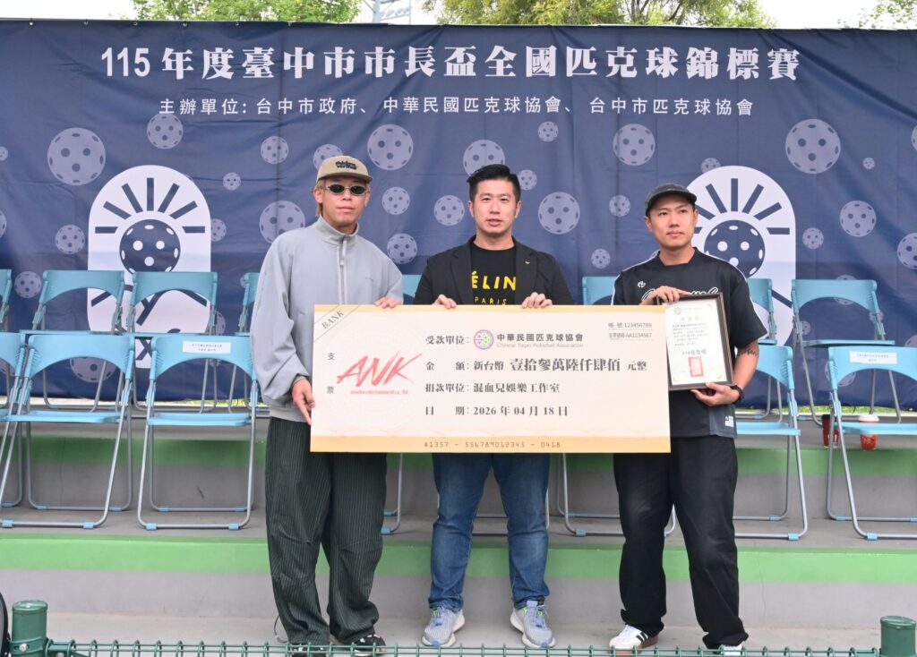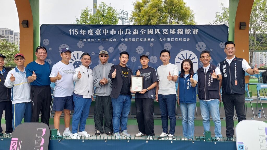台中市新興運動匹克球熱度持續升溫!由台中市政府運動局攜手台中市匹克球協會及中華民國匹克球協會共同主辦的「115年度台中市市長盃全國匹克球錦標賽」,18日於台中市國際網球中心熱鬧登場,吸引全國約400名選手參賽,年齡橫跨10歲至65歲;知名樂團玖壹壹成員洋蔥與健志也驚喜現身開幕典禮,並由大會理事長楊哲明頒發聘書聘請洋蔥(陳皓宇)擔任中華民國匹克球協會副理事長,透過藝人影響力帶動全民關注,為賽事增添亮點。