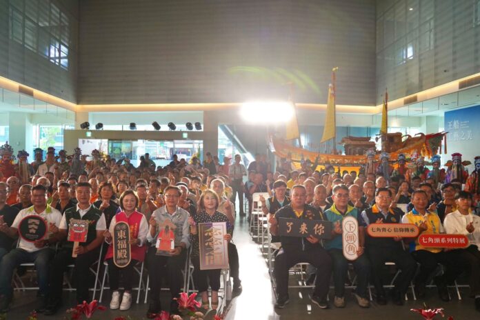 屏東縣王船文化館「七角頭系列特展(三)—《念念之間》」19日熱鬧開展,由縣長周春米、立法委員徐富癸、東福殿城隍廟主委許秋文、東隆宮董監事、七角頭代表與各界貴賓到場共襄盛舉。縣府表示,此次展覽以城隍信仰為核心,透過展覽動線及情境設計,帶領觀者逐步走入信仰文化的脈絡與內涵,邀請民眾即日起至7月19日,一同到場感受信仰、生活與自我之間的連結。