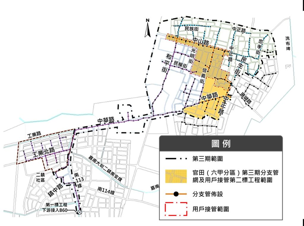 臺南市官田區污水下水道系統六甲分區第三期分支管網及用戶接管第二標工程範圍圖