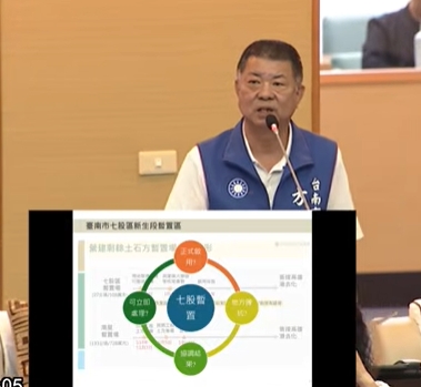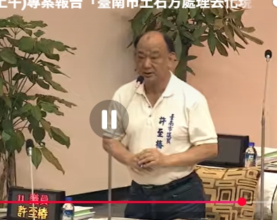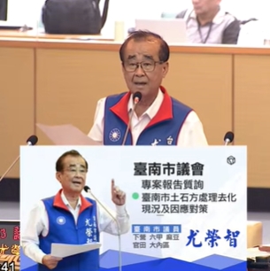 蔡育輝說,為何會有土方之亂?坊間傳言,民間土方銀行都只負責蓋章,完全不管土方流向何方,現在說要管制,不知環保局是否開始利用GPS追蹤這些土方是否落實在填海造陸上,目前土資場處理費用暴漲,從一立方價格600到900元,現在漲到一立方2015元,費用飆升,可是沒車、沒設備可以讓土方進行去化的優質化處理,如何來處理土方之亂,希望市府出面廣設公辦土資場,土方好好管控後,不要只利用這些土方來填海造陸蓋機場,要利用優質土方蓋社宅,讓台南市民能安居樂業。