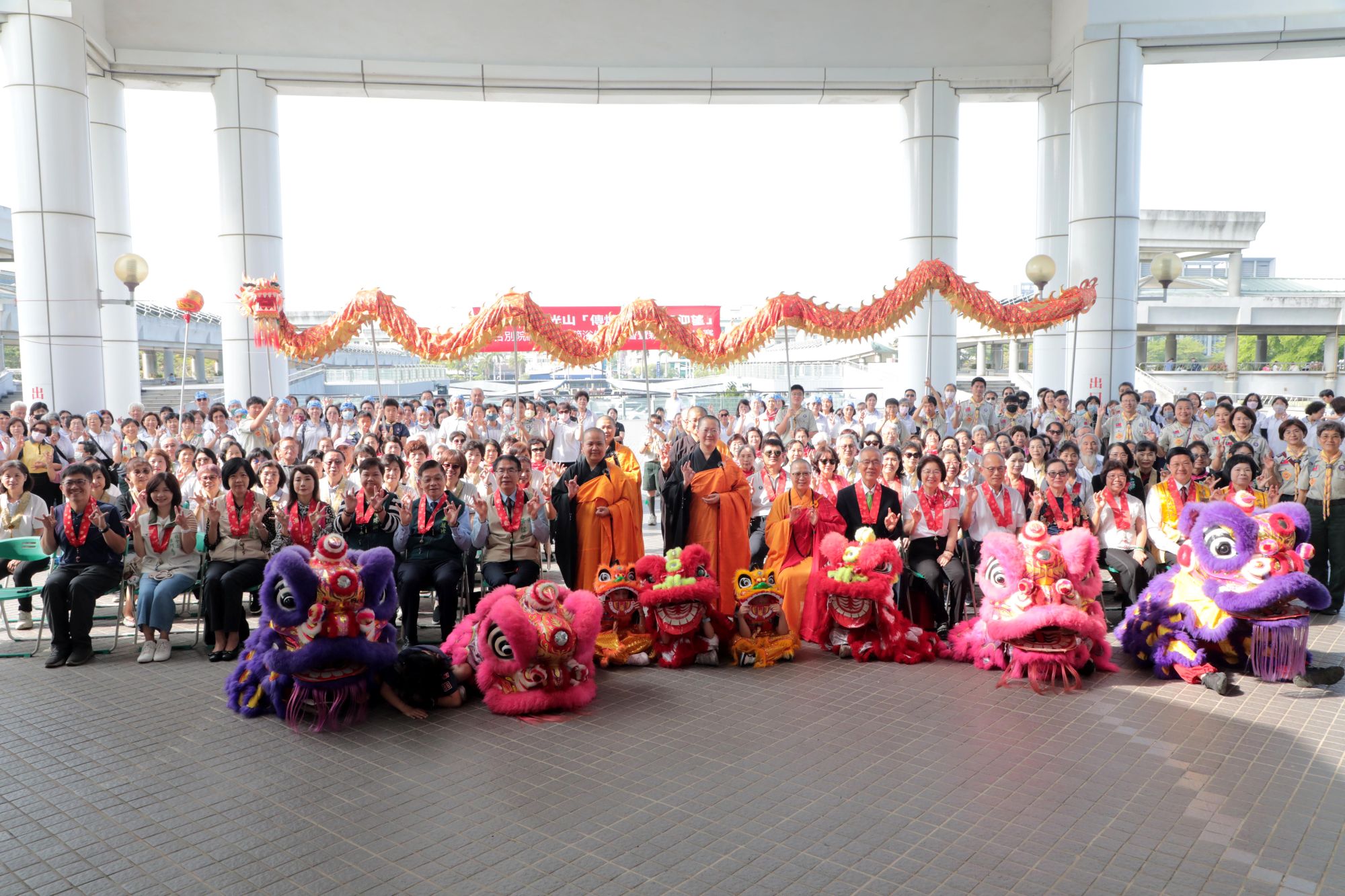 佛光山南台別院26日於台南市政府二樓中庭廣場盛大舉辦「傳燈六十 百年仰望」-慶祝佛誕節浴佛園遊會暨戶外親子創意寫生比賽,現場吸引眾多市民與親子家庭熱情參與。台南市長黃偉哲受邀出席恭迎法會「迎太子」儀式,並率副市長姜淋煌及市府團隊參與浴佛、獻花,為台南及台灣祈福,祈願社會祥和、國泰民安。