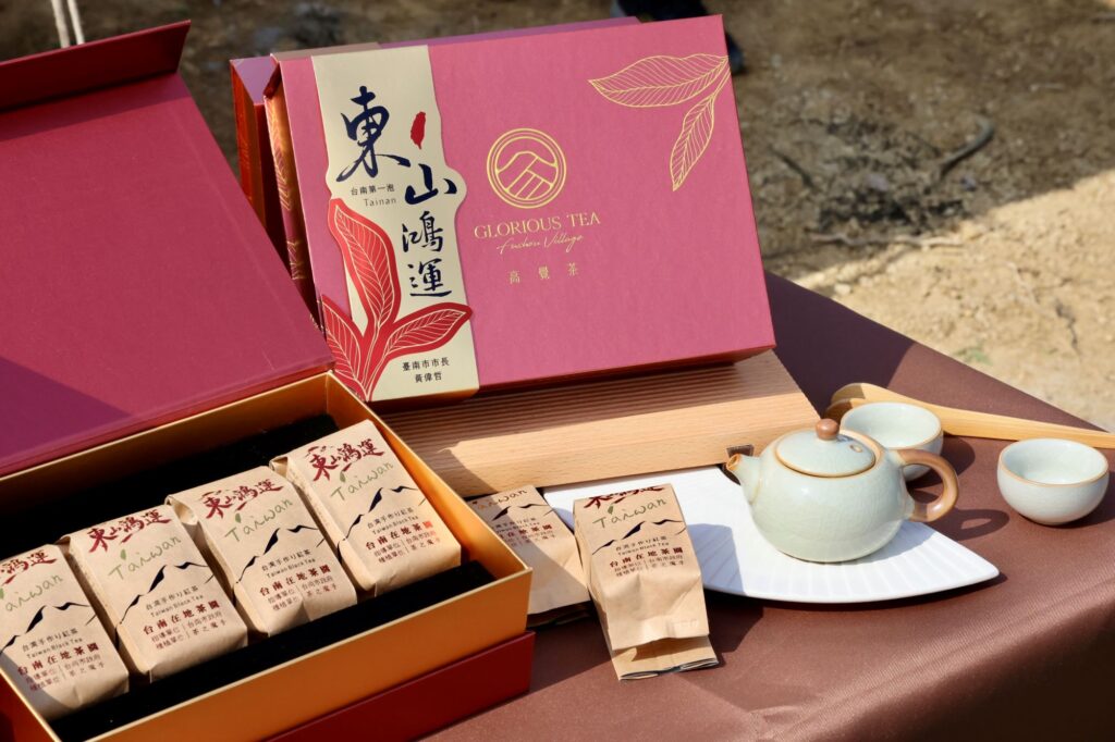 農業局長李芳林指出,在地連鎖茶飲品牌「茶之魔手」,經農業部茶及飲料作物改良場南部分場技術輔導,以友善耕作模式於東山區經營茶葉面積達15公頃。本年首批採收品種「四季春」茶菁達480公斤,並透過意精研有限公司獨創技術精製成紅茶,並包裝成限量「東山鴻運」紅茶禮盒,贈予市府交流推廣,共同展現台南農業實力。