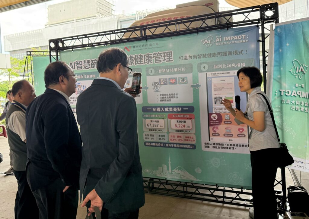 臺南市智慧健康成果再升級!「第一屆AI IMPACT:智慧城市與大南方成果展示」28日在沙崙智慧綠能科學城AI創新應用大樓登場,由國家科學及技術委員會主辦,行政院政務委員、國科會主委 吳誠文 與臺南市長黃偉哲親臨參與。臺南市政府衛生局於展會中展示近年推動的智慧健康成果,包括AI影像輔助分析、健康共照雲整合服務以及智慧醫療管理系統,展現臺南在智慧健康城市的發展成果。