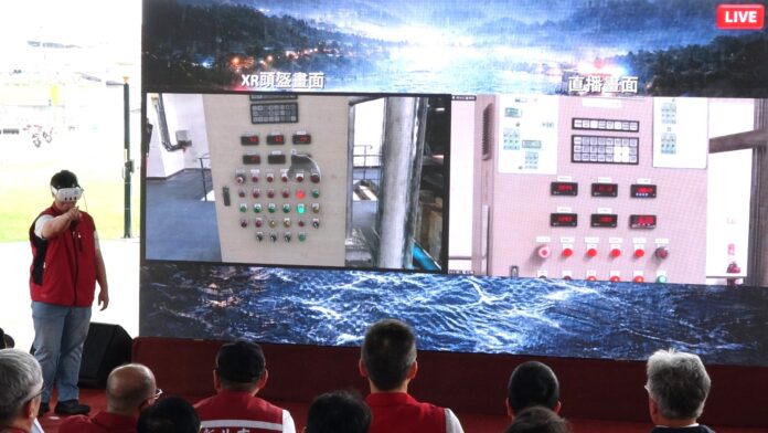 新北市政府水利局28日上午於新莊塔寮坑抽水站堤外高灘地舉行「115 年度防汛演習」,由市長侯友宜蒞臨指導。首度演示升級版「智慧防汛平台」,除導入 AI 技術將降雨監測提升至每2分鐘更新,搶先2小時應變,更全國首創XR(延展實境)遠端操控系統,讓人員免進抽水站,以「虛按實動」模式操控機組,提升應變效率與防洪安全。