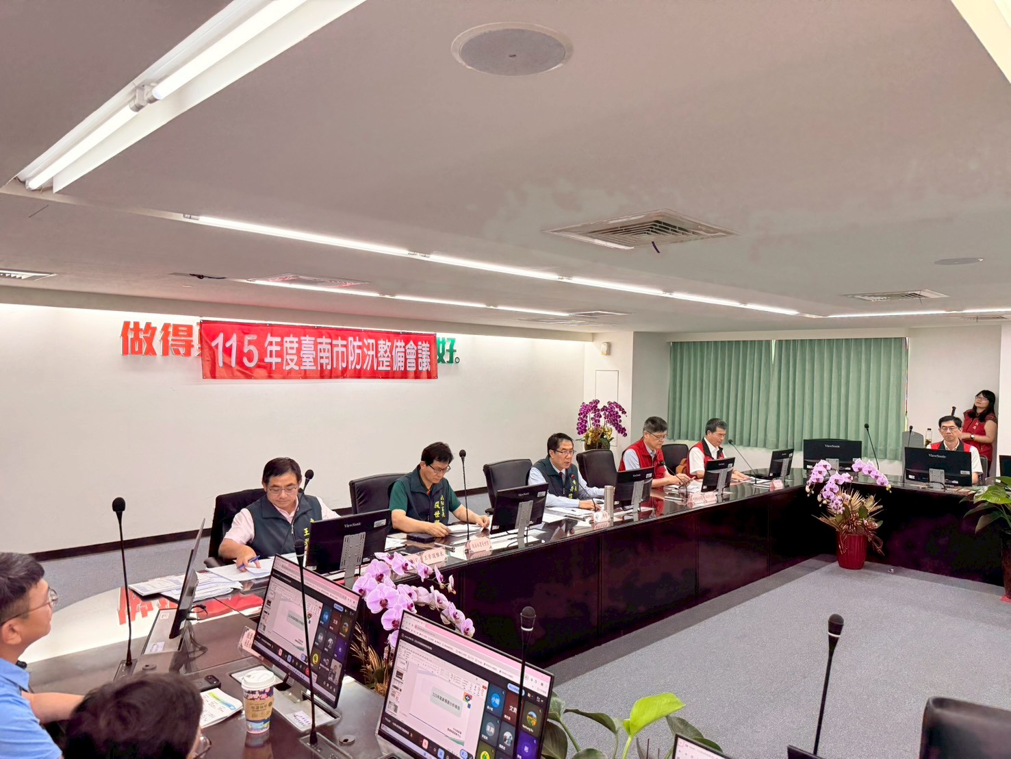 因應汛期即將來臨,29日由市長黃偉哲親自主持「115年度臺南市防汛整備會議」,率市府團隊聯合經濟部水利署等中央單位召開,並同步透過視訊方式連線南市37區區公所,有效提升會議效率,聽取各單位整備成果,展現面對極端氣候的萬全準備,共同守護市民生命財產安全。