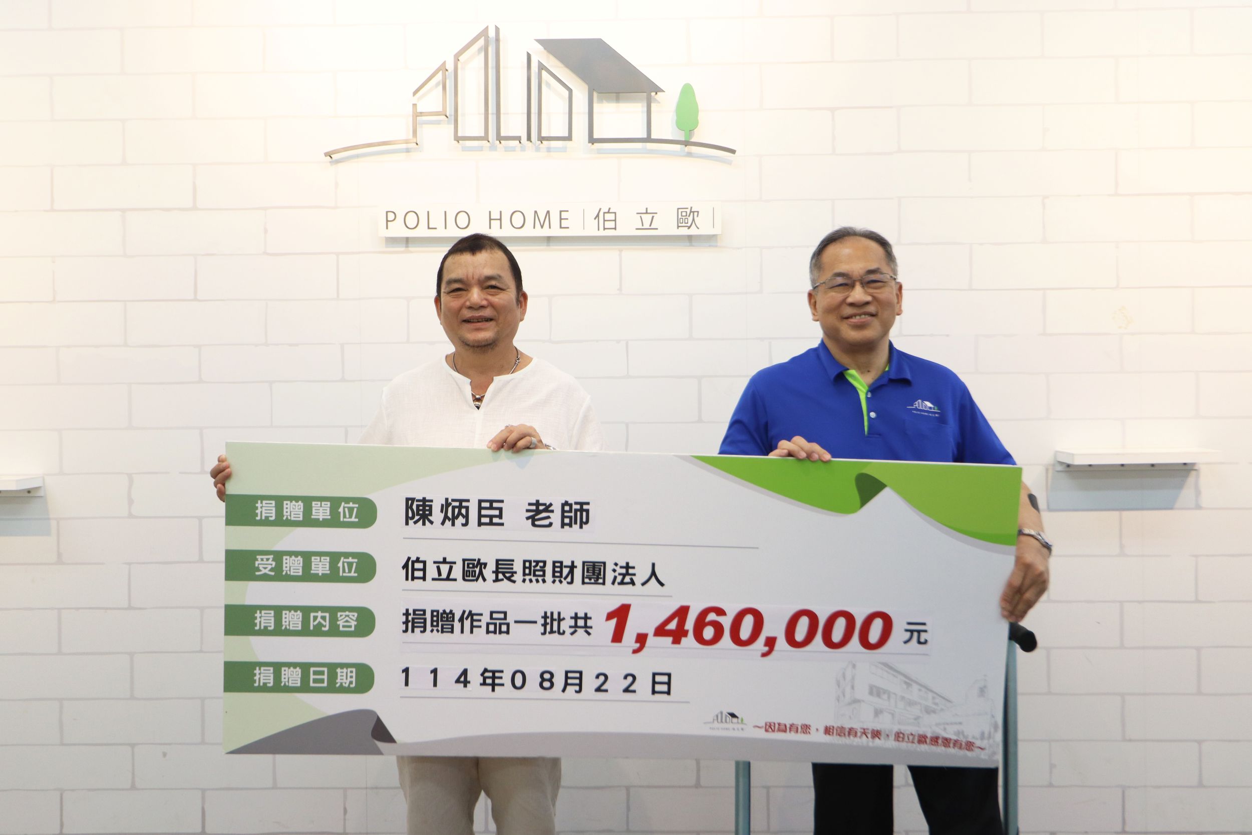 陳炳臣2023年曾以「大道之行 藝挺公益」為主題舉辦公益展覽,短短數週便募得逾千萬元,全數捐助伯立歐建家園基金,讓原本緩慢推動的工程再次看見曙光。