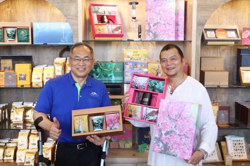 陳炳臣(右)授權作品供「愛加倍庇護工場」設計中秋禮盒,成為兼具收藏與祝福的藝術品。(圖:陳炳臣提供)
