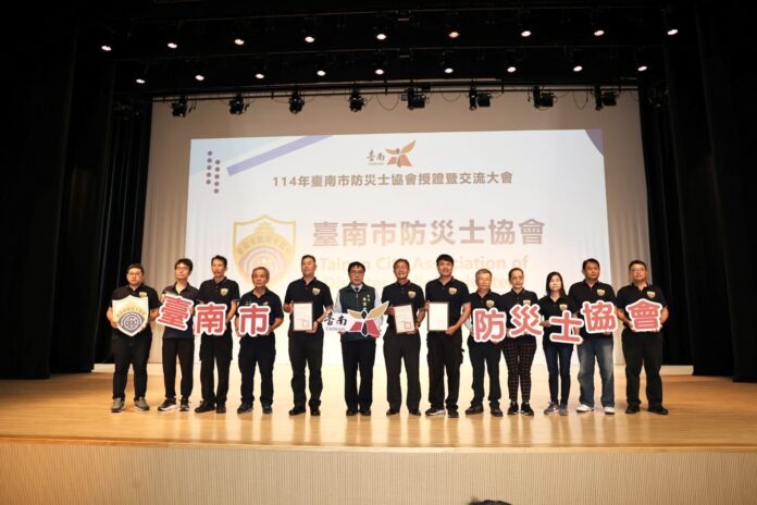台南市政府與成功大學防災研究中心25日在永康社教中心共同舉辦「台南市防災士協會授證暨交流大會」,逾百位設籍台南市防災士踴躍參與。會中由市長黃偉哲為首屆防災士協會理事長侯俊彥頒發證書,並公開表揚37位績優防災士,充分展現台南市推動防災士制度的積極成果與發展。