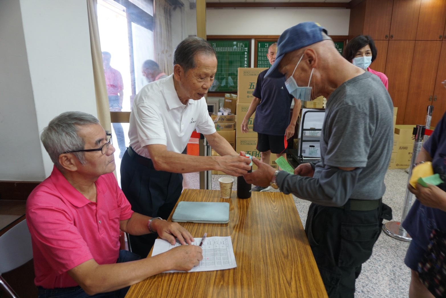 蕭清杰董事長現場致贈紅包,並親切祝福鄉親身體健康。勤務隊亦熱心幫忙搬運一箱箱供品。