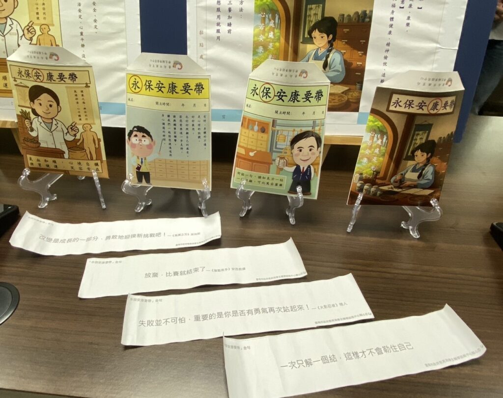 氣候變化可能影響情緒與心理健康,秋冬季節日照減少、氣溫下降,容易造成情緒低落。青少年面對課業、人際與自我認同的壓力,自我傷害的風險相對提高。臺南市教育局學生輔導諮商中心大新豐區專業輔導人員結合在地特色,推出安心宣導工具「永保安康要帶(藥袋)」,象徵心靈的處方箋,陪伴學生走過可能難以訴說的低潮時光。