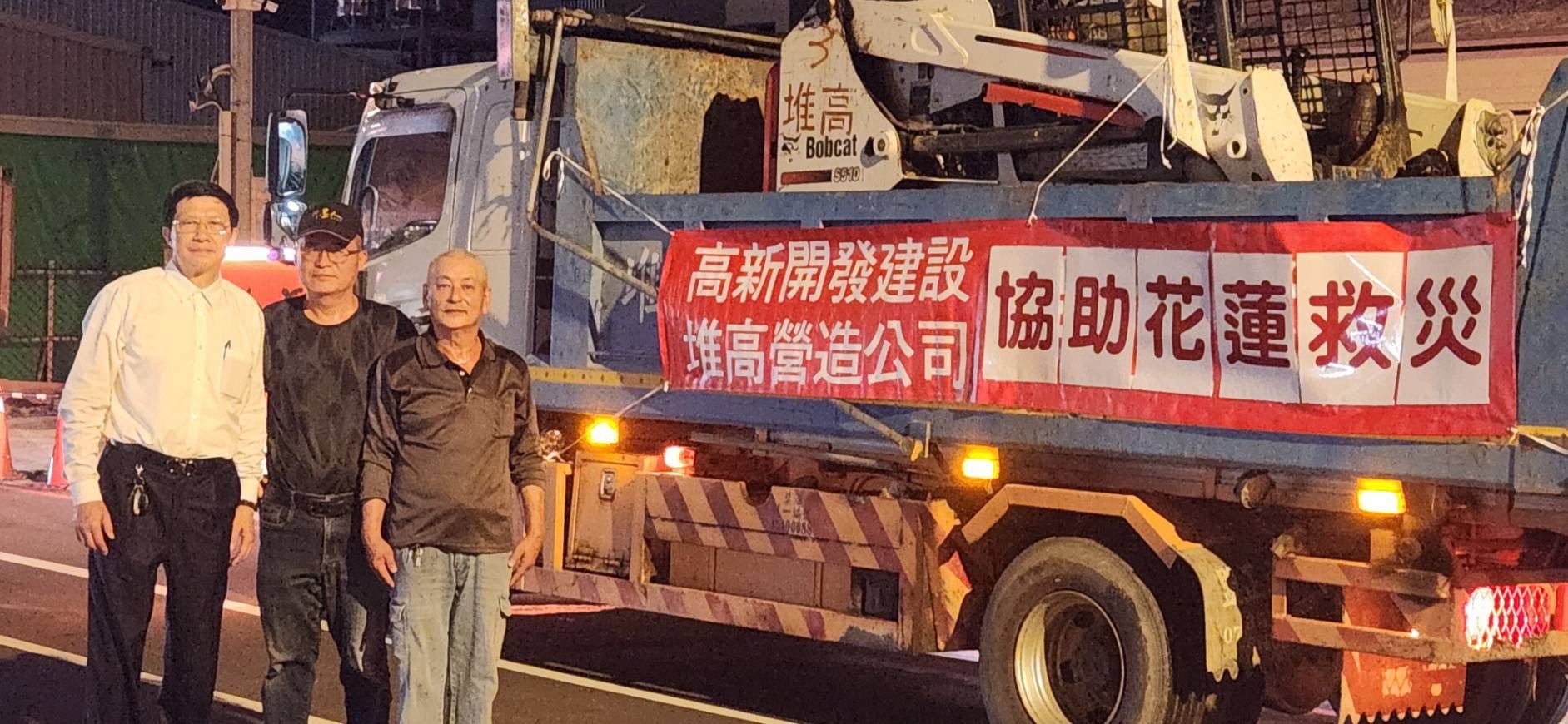 樺加沙颱風重創花蓮,台南市議員朱正軒牽線堆高營造與台南市消防局搜救大隊協力救災,堆高營造楊政達董事長表示,二部卡車載著二部山貓,於週五凌晨三點出發前往花蓮光復鄉,經八小時車程,於當日中午抵達光復鄉糖廠會合並投入搜救行動。