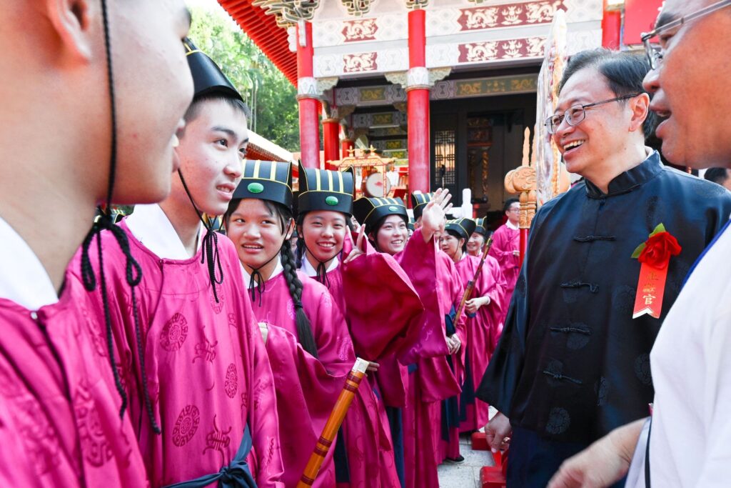 民政局表示,釋奠典禮不僅是紀念孔子及展現儒家文化的儀式,更是對教育工作者的肯定與感謝,盼透過莊嚴盛典,加深青年學子的文化素養,讓「尊師重道」精神代代相傳。今(114)年市府也特別準備限量版桃園市孔廟意象運動毛巾及智慧糕、素太牢(甜米糕),於典禮結束後分贈現場觀禮民眾,一同慶祝教師節。