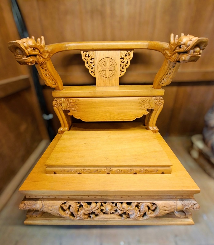 由明式圈椅演變而來佛椅,椅頭常見有如意頭與龍頭。(張耘書拍攝)