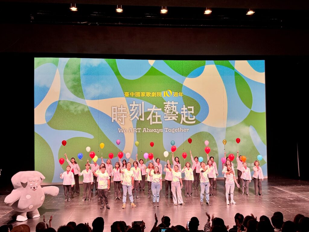 2016年開幕的台中國家歌劇院10月3日在中劇院舉辦10週年展演活動起跑茶會,邀請藝術界、產業界與會。台中國家歌劇院藝術總監邱瑗以「永續場館、人才培育、多元展演」3個面向,分享營運成果及展望。可愛吉祥物「壺裡狗」也首度亮相,活動在10週年主題曲〈揚帆啟航〉合唱聲中圓滿結束。