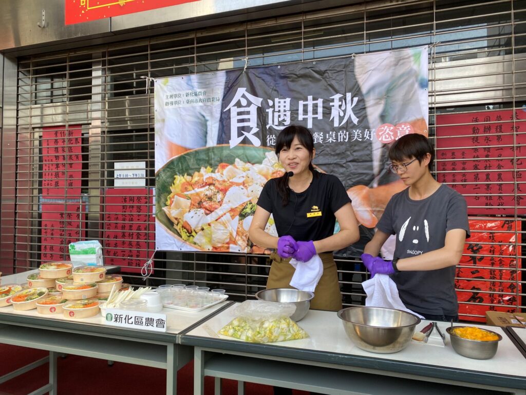 為推廣臺南市優質在地農產品,深化民眾對在地農業的認識,臺南市政府農業局與新化區農會於10月4日共同舉辦「「秋有明月·闔家喜悅」活動。活動當天吸引眾多民眾熱情參與,現場有青農市集及「黃金泡菜涼麵」料理示範體驗活動,展售多樣農特產品,包括有機蔬果、蜂蜜、竹薑等,讓消費者能直接選購新鮮食材,為中秋佳節準備健康又美味的佳餚。