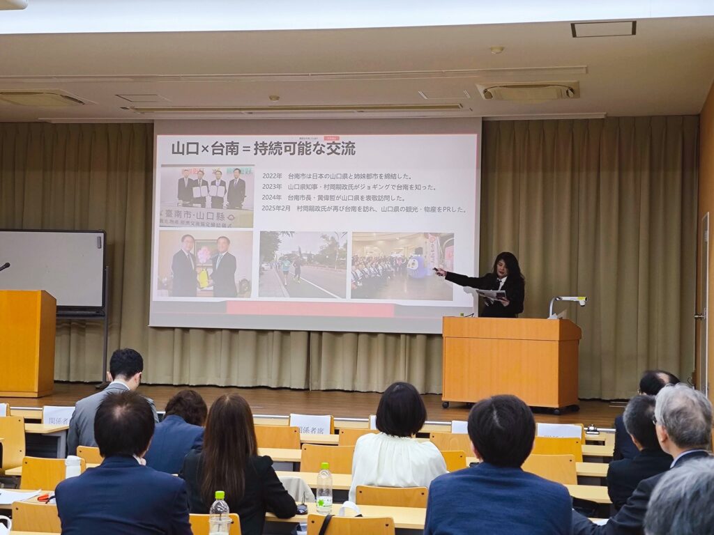 台南市與日本山口縣自締結姊妹市以來,雙方持續推進教育、文化與產業的多層次交流。2025年度日本經營管理學會第92屆全國研究大會於10月4日在山口縣周南公立大學舉行,會中邀請山口縣知事村岡嗣政演講,分享山口縣治理,與台灣在產業及學術領域的合作成果,隨後由長期研究地方創生與文創設計實踐的蔡芳茹博士,以台南為主題發表專題演說。