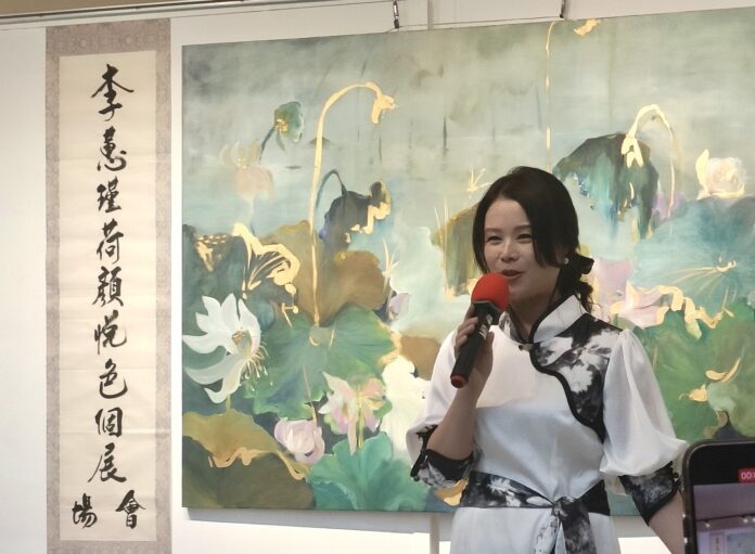 也是文學才女的李蕙瑾表示,這次展覽取名「荷顏悅色」,來自她的詩作「荷心初動緣自起,顏笑輕開一抹詩;月滿風光非久駐,色空花落是歸時。」亦呼應其一貫禪與荷的創作主題