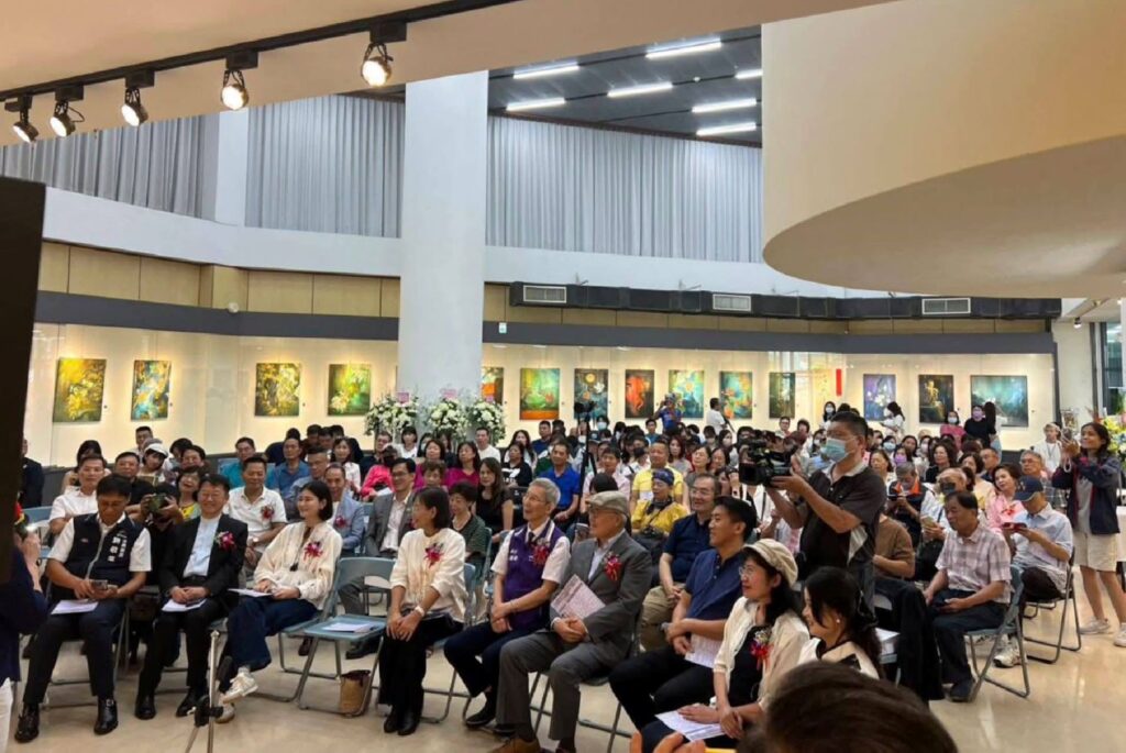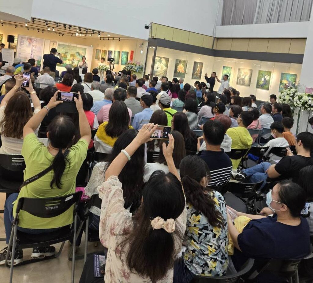《荷顏悅色 》李蕙瑾油畫個展,10月4日舉行盛大的藝術音樂開幕茶會,由古箏老師謝佳錡分三段演奏箏樂助興,讓美麗的繪畫作品與優美樂章相互交融;多才多藝的李蕙瑾則與曾任台中市政府勞工局長的雲林科大科法所教授吳威志合唱一曲〈梅花三弄〉,歡娛賓客。