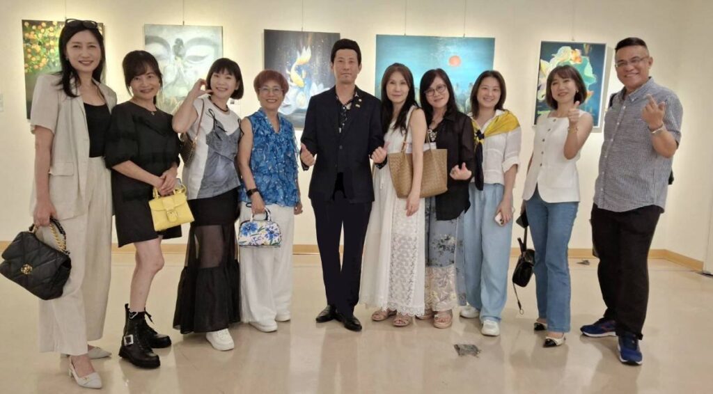 別號「兩儀」的李蕙瑾,繪畫創作以「禪」為核心,以荷花為主要題材。在她筆下,荷花不僅是花卉,更是生命變幻與智慧的體現。這次展覽作品如〈美的祈福〉是她在疫情期間,以手捧蓮花的佛像,傳達對人間平安的祝福。這些畫作透過細膩的筆觸與豐富的色彩,帶領觀者進入一個充滿寧靜與禪意的祥和世界。