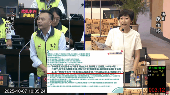 台南市議員陳怡珍7日在市議會質詢中指出,赤崁園區成功國小地下停車場位於市區停車熱點,長期以來「一位難求」,周邊商家與居民都殷切期盼停車場早日啟用,但市府多次跳票,讓民眾深感失望。市府目前預計待一、二期工程皆完成後,明年3月可望取得使用執照,最快明年6月完工開放。陳怡珍要求市府掌握進度、協助文化局加速完工,讓停車需求早日獲得紓解。