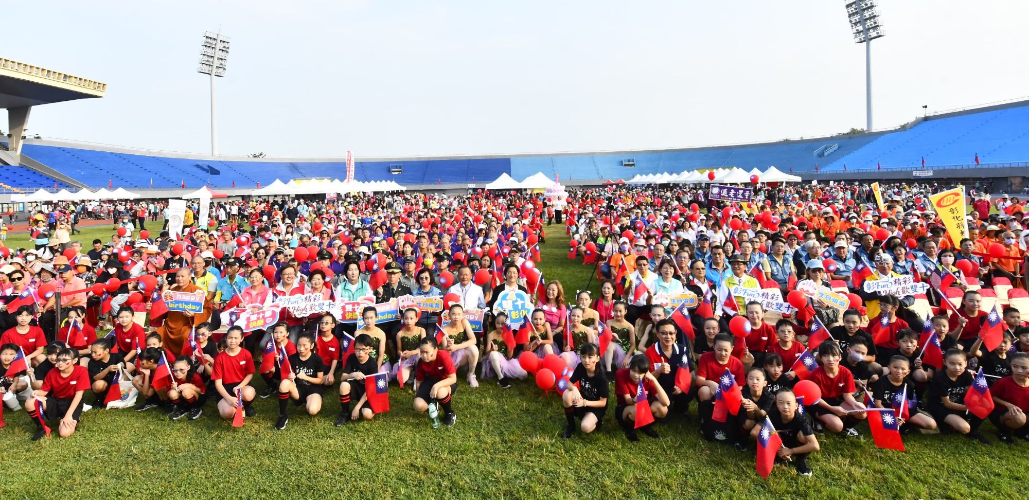 彰Fun精彩・High歡雙十,歡慶中華民國114歲生日,彰化縣政府10日上午7時於彰化縣立體育場盛大舉辦「彰Fun精彩・High歡雙十」健行活動暨公益園遊會。縣長王惠美與會參加升旗典禮,現場吸引超過四千人一同參與,展現大家對國慶的熱情與期待,一起為彰化的未來加油打氣!王縣長表示,祝福中華民國生日快樂!感謝社會處及救國團用心規劃一系列活動,活動包括有公益市集、親子體驗活動區,還有闖關集點以及健行活動。9月開放線上報名後,3千名額很快就額滿,現場總參與人數突破4千人,「2025台灣設計展」同時也於今天正式開展到10月26日,為期17天,邀請鄉親帶著親朋好友一起踏上「彰化行」的旅程。