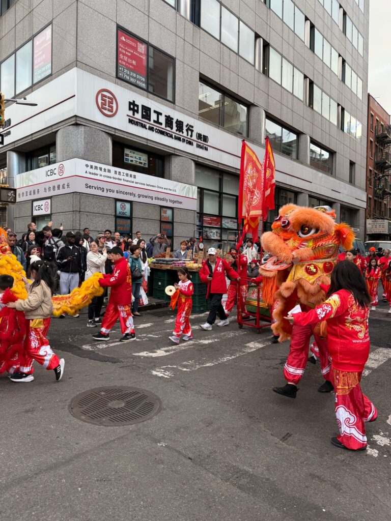 上午盛典從升旗儀式開始,由駐紐約臺北經濟文化辦事處代表、中華公所與當地僑團領袖共同主持。眾人在中華公所前鞠躬獻花,向國父孫中山銅像致敬。隨後於華埠街道展開遊行隊伍,遊行路線橫跨Mulberry Street、Worth Street等主要街道。沿途旗海飄揚、鑼鼓齊鳴,吸引許多民眾駐足觀賞。