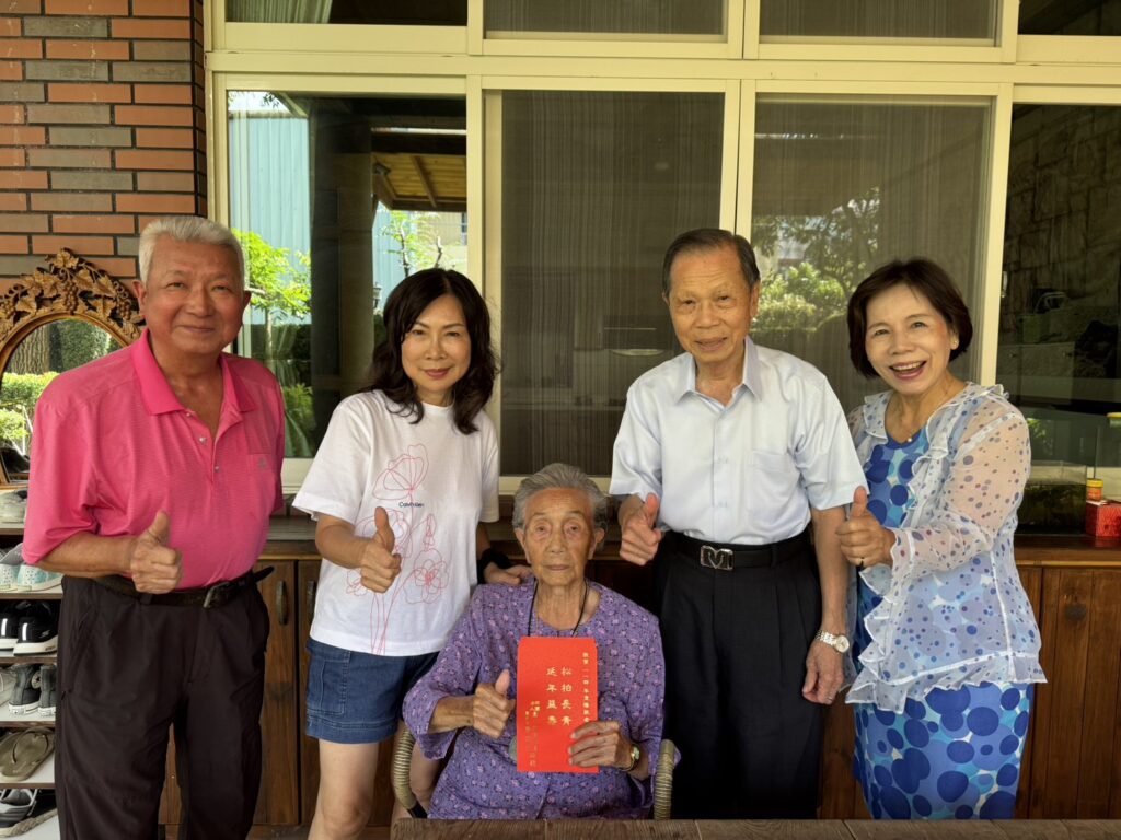 百歲人瑞則於8日由萬和宮蕭清杰董事長及董事廖火桐、監事劉清良與總幹事江惠雯陪同,前往楓樹里住處祝壽。104歲何張月英是何文海議員母親,老太太見到蕭董事長十分高興,還提到幾位親朋故舊,回憶往事,蕭董事長稱讚老人家記性好。105歲的黃江犁在兒媳照顧下,氣色不錯,兒子黃木添感謝蕭董事長連續三年親自前往道賀,提到老母親90幾歲時還每天到菜園,近幾年體力稍退,蕭董事長祝福老太太平安健康,延年益壽。