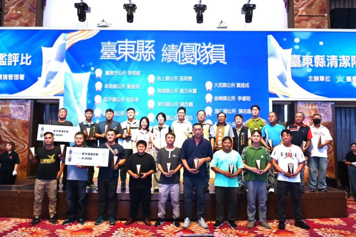 「感謝每一位為臺東之美而辛勤付出的雙手」,臺東縣環境保護局14日舉辦「114年清潔隊員節暨表揚典禮」,公開表揚17位績優清潔隊員、22個環境清潔競賽績優單位、6個孳生源防治績優鄉鎮及54座績優公廁。縣長饒慶鈴一一頒獎表揚清潔隊員們一整年的奉獻,並恭喜池上鄉再度榮獲鄉鎮組最高榮譽,成功奪下16連霸佳績,她並宣布,感謝清潔隊員長期默默守護家園,臺東縣明年將首度發放每人1千元的清潔隊員禮金。