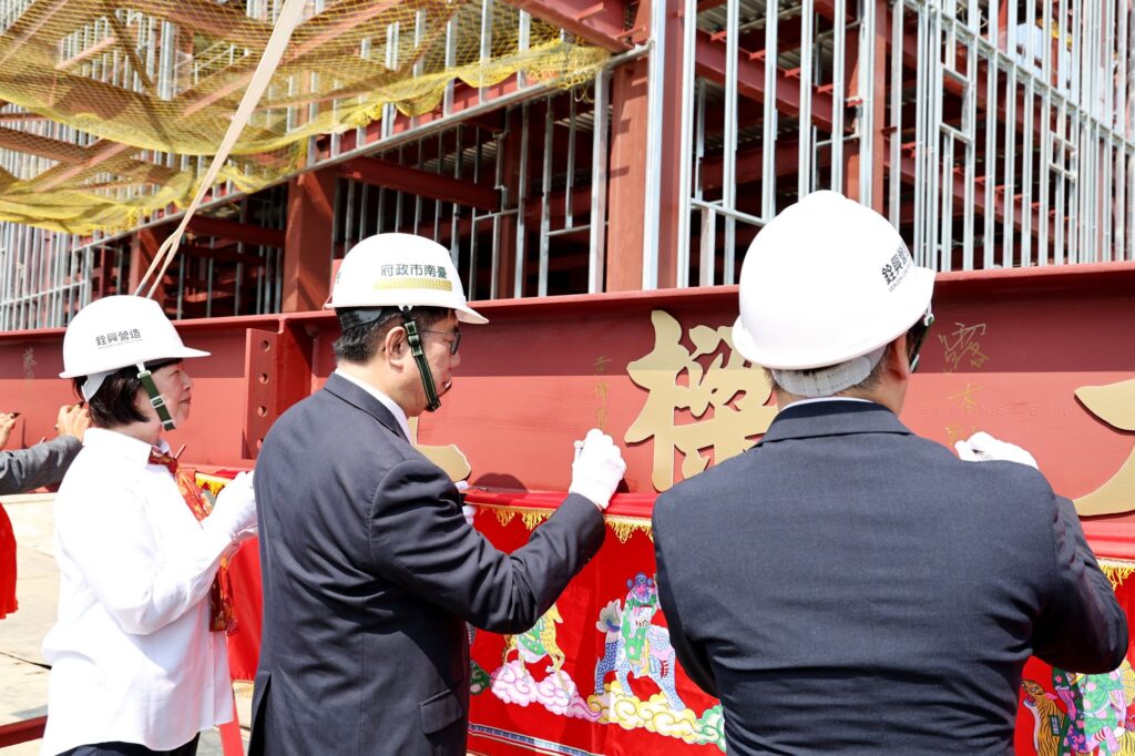 日商台灣荏原精密股份有限公司16日上午於南科三期舉行「台南第二工廠」上梁典禮,邀請台南市長黃偉哲偕同南科管理局副局長林秀貞、科工區南區辦事處長郭春暉及台灣荏原董事長露木聖一等貴賓共同見證新廠建設進入關鍵階段,儀式中由市長黃偉哲鎖上金螺絲,象徵台南鎖住科技、鎖住未來。