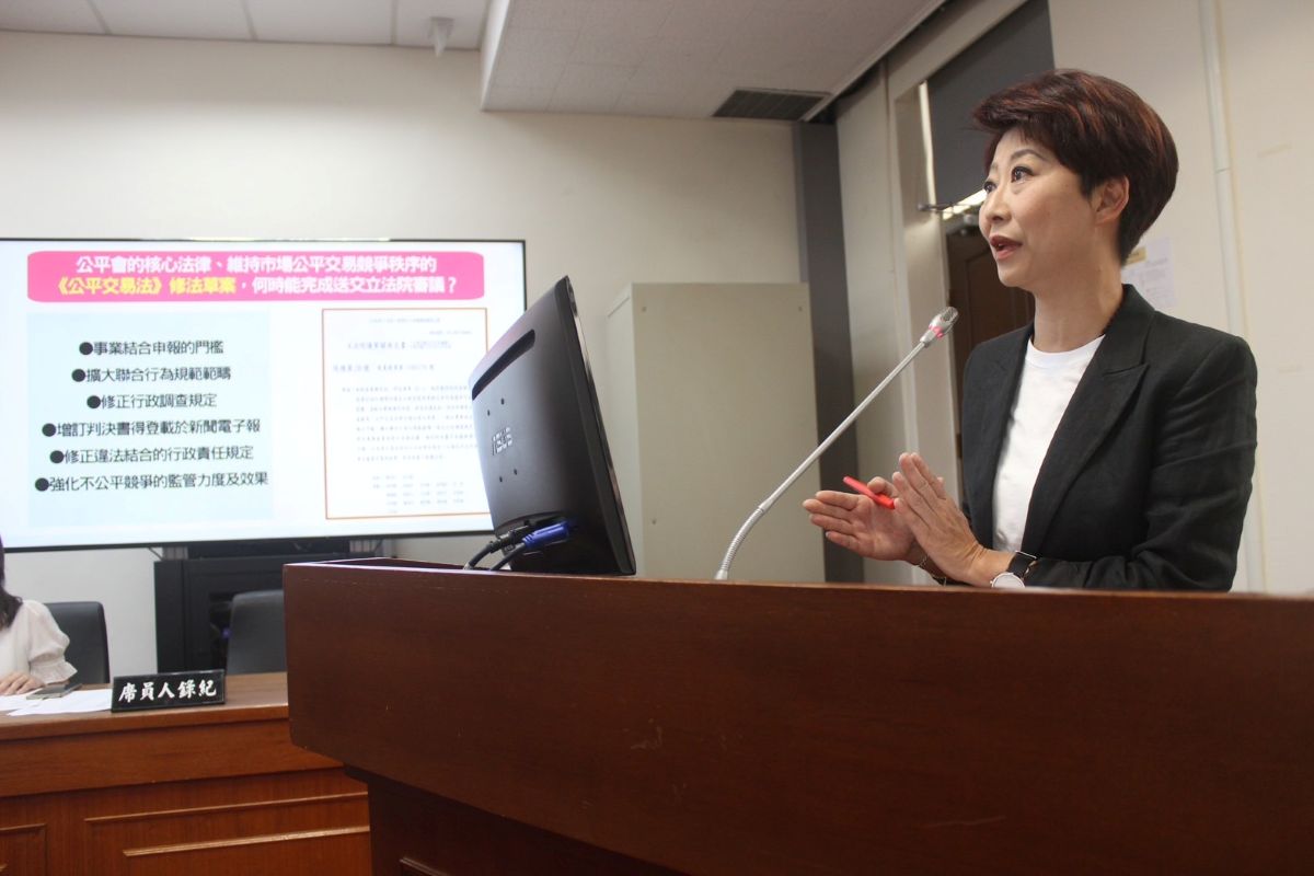 最後,陳亭妃要求公平會在本會期內送出修法草案,送交行政院討論,讓院內、社會各界參與公聽會與審議。「舊法已經難以應對現實社會的變化,這個會期一定要送行政院。」代理主委陳志民則當場允諾長這個目標努力。