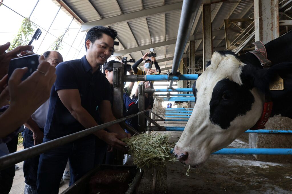 臺北市長蔣萬安16日在立法委員謝龍介邀請與安排下,率領研考會、教育局、產業局及悠遊卡公司代表前往臺南市佳里區梅桂種畜場,實地了解臺灣本土酪農的運作現況與產業發展。