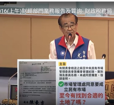市議員尤榮智說,麻豆中央民有市場問題紛紛擾擾十多年,建物老舊有安全疑慮,市府公告停用,攤販卻仍在原地營業土地沒返還,官司不斷,抗爭也不斷,地主告贏,市府終於要拆除,因為七成土地是私有,請市府出面協調,若要成立民有市場,合適的土地找到了嗎?