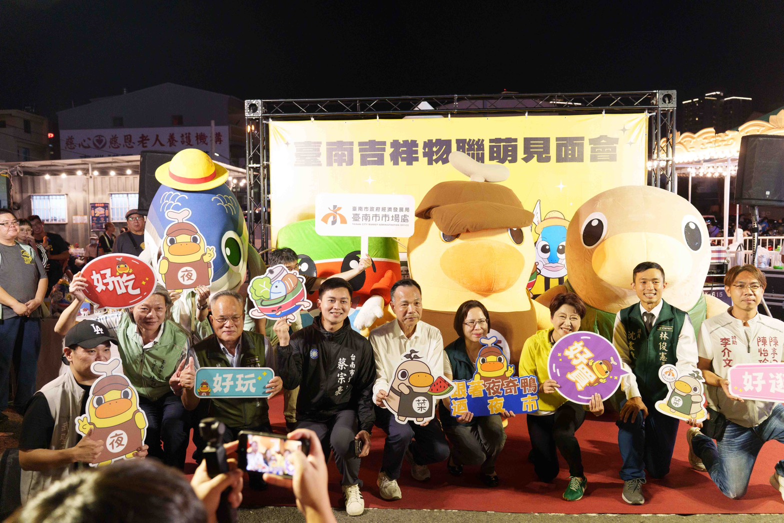 人氣爆棚的夜市吉祥物「夜奇鴨」、「菜奇鴨」、「菜籃仔」、「魚頭君」及「巷仔Niau」組成「吉祥物大聯萌」,17日晚來到武聖夜市和大家見面啦!現場不僅有精彩的吉祥物表演,還有大家最期待的抽獎活動,讓我們一起把超萌的吉祥物周邊商品帶回家!